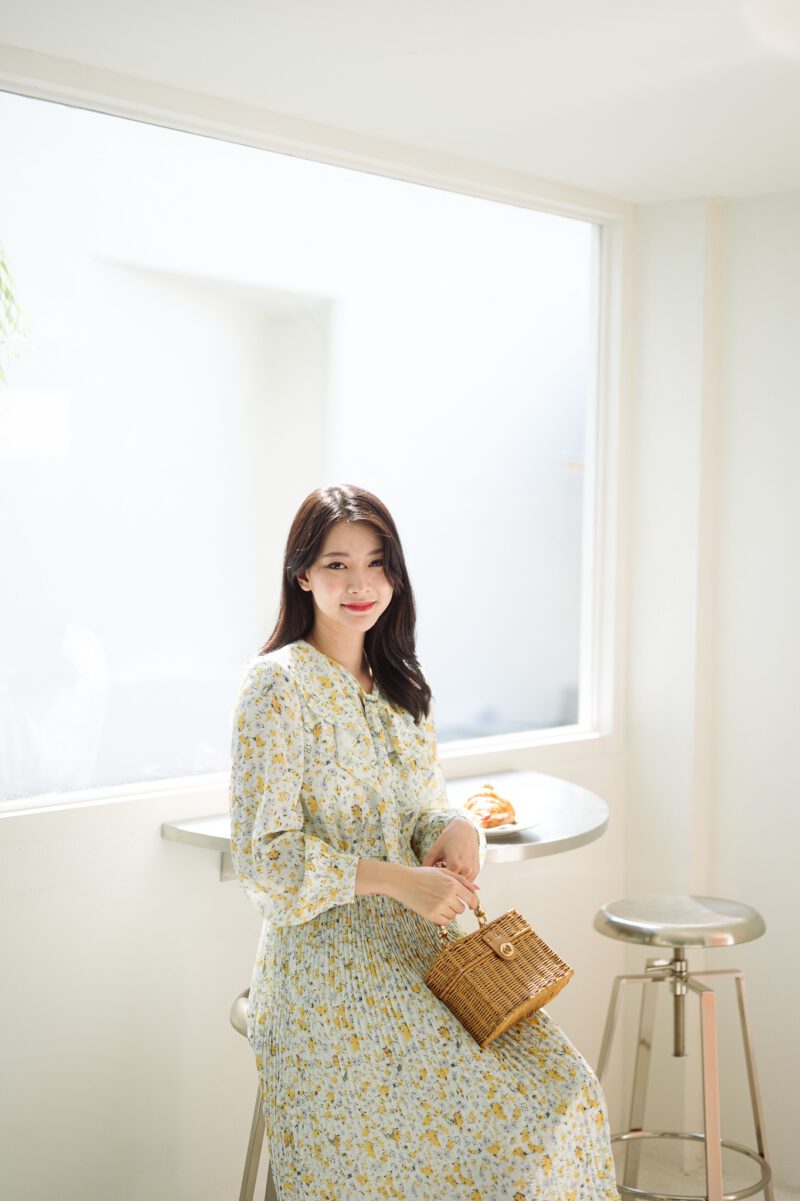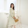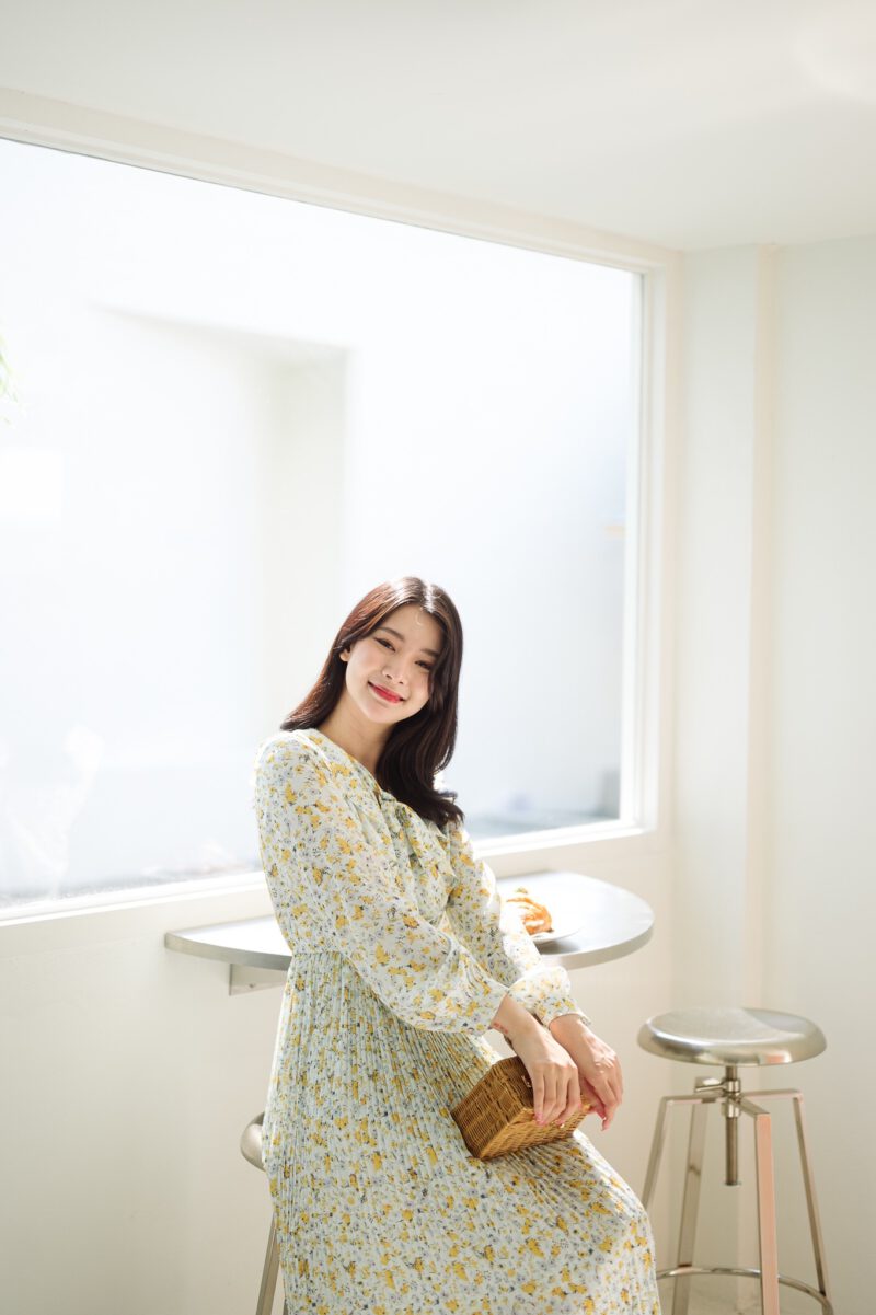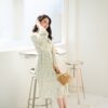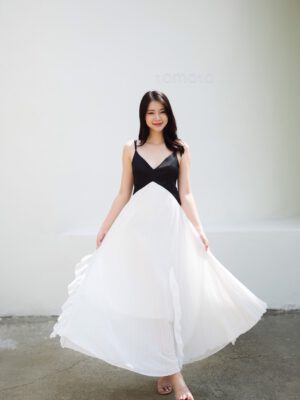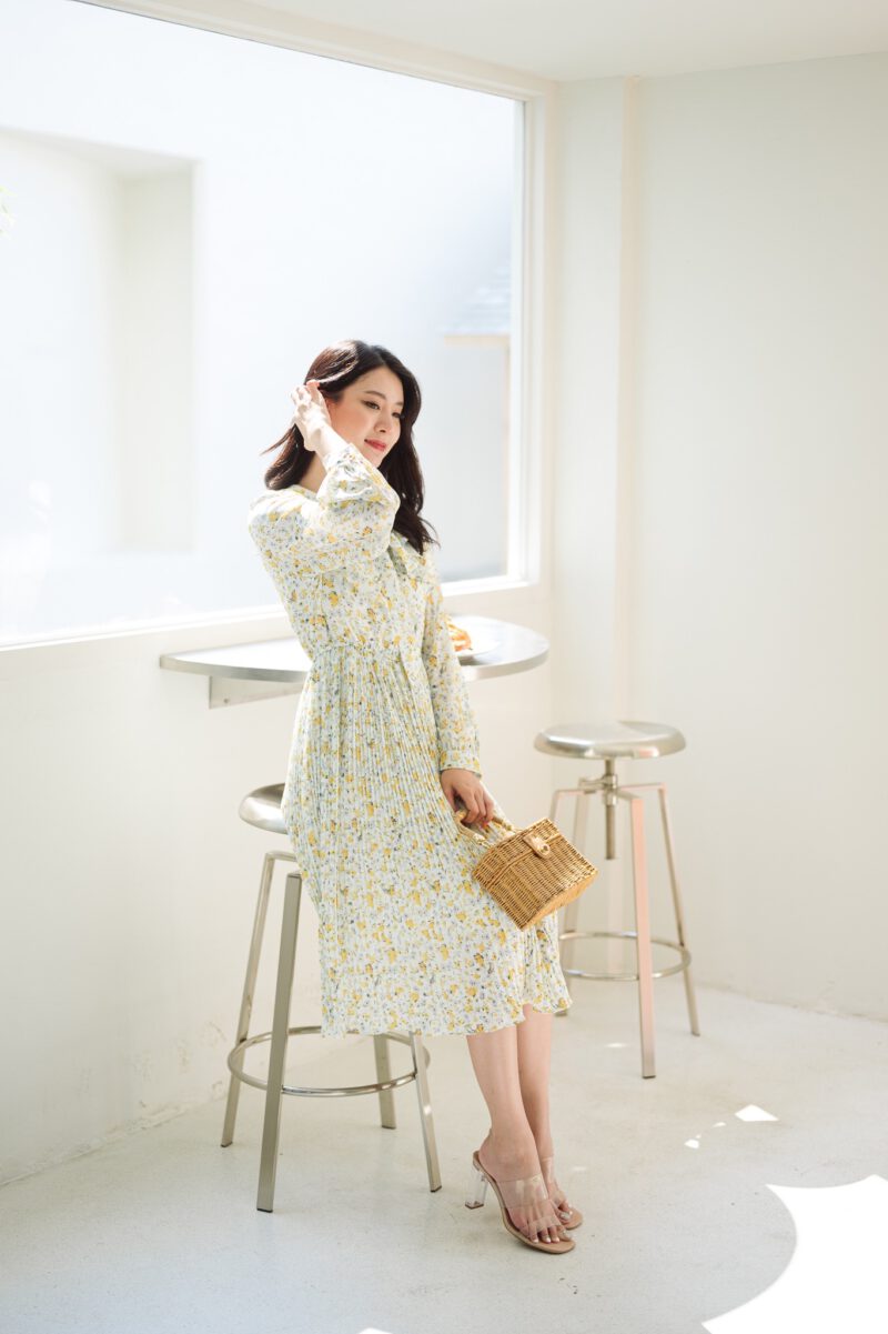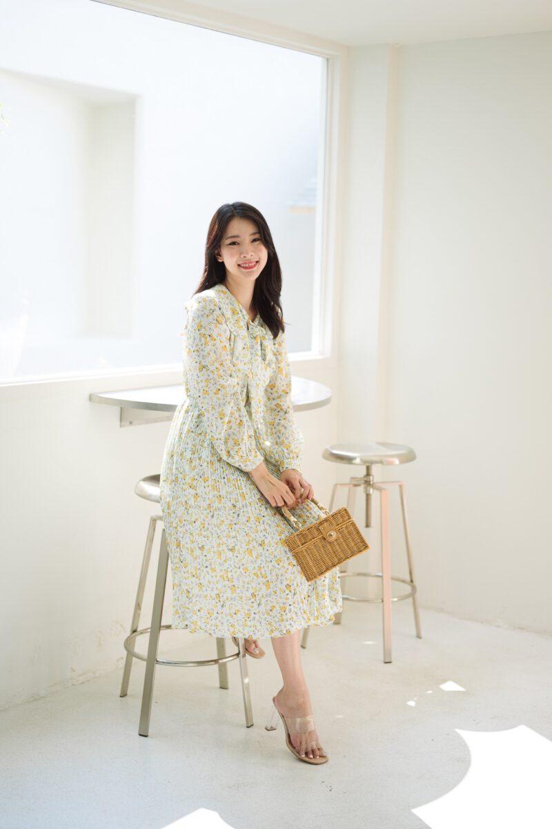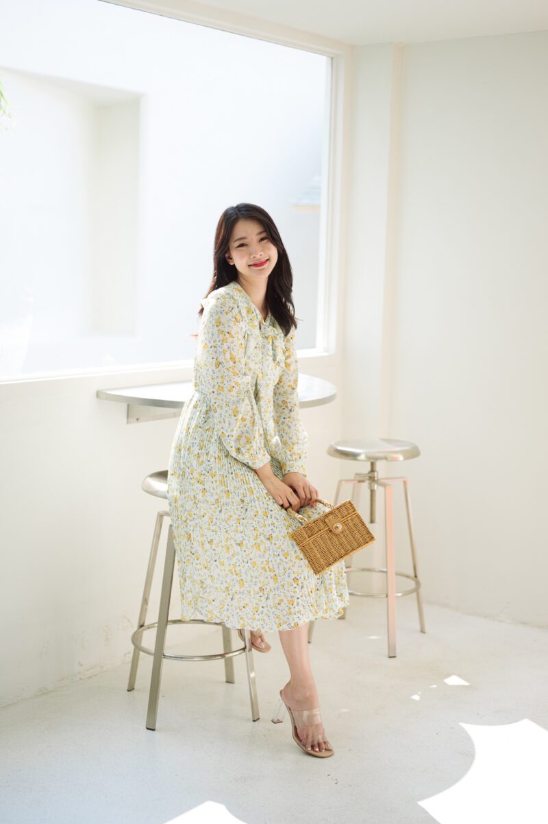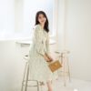 PS098 เดรสยาว เนื้อผ้าชีฟองนิ้ม ไม่โปรงแสง ใส่สบาย ไม่บาง ชุดมีซับใน แขนยาว ปลายแขนกระดุม คอปกแต่งระบาย มีสายผูกโบว์ที่คอ ด้านหน้าเอวชุดยางยืด ช่วงกระโปรงอัดพลีท ใส่แบบสวม ไม่มีซิป