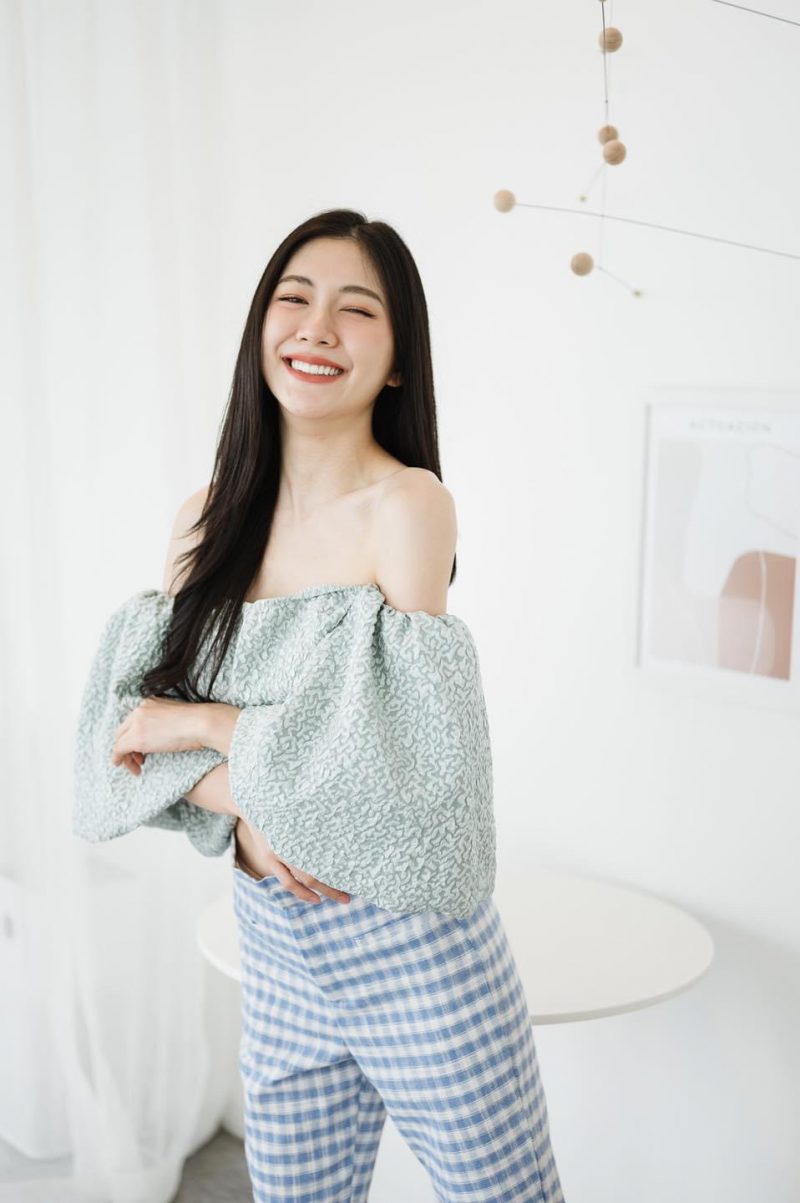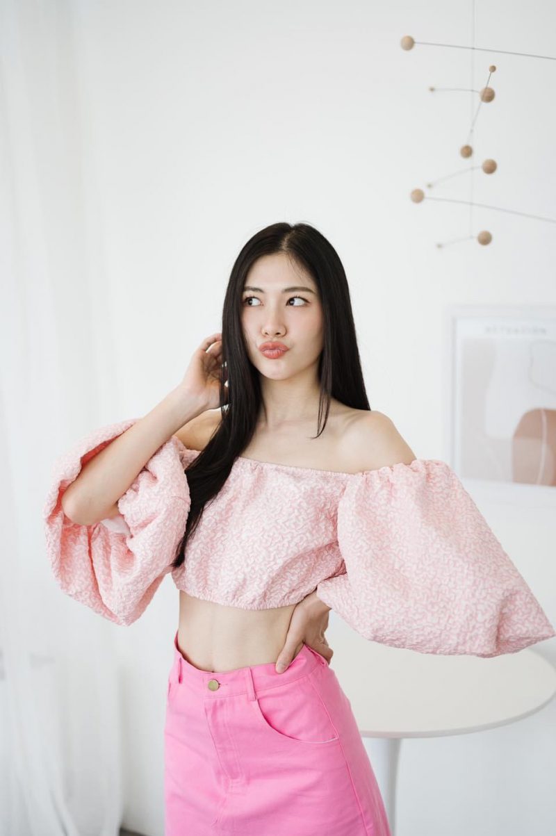 เสื้อครอปทรงสั้น รุ่นนี้เป็รยางยิดรอบ อกและรอบชายเสื้อ ยืดได้เยอะ ใส่แบบสวม อกไม่มีฟองน้ำ อกใส่แบบหลวมไม่เข้ารูป แขนทรงบอลลูน (แขนชุดมีซับใน) สี ชมพู,เขียว