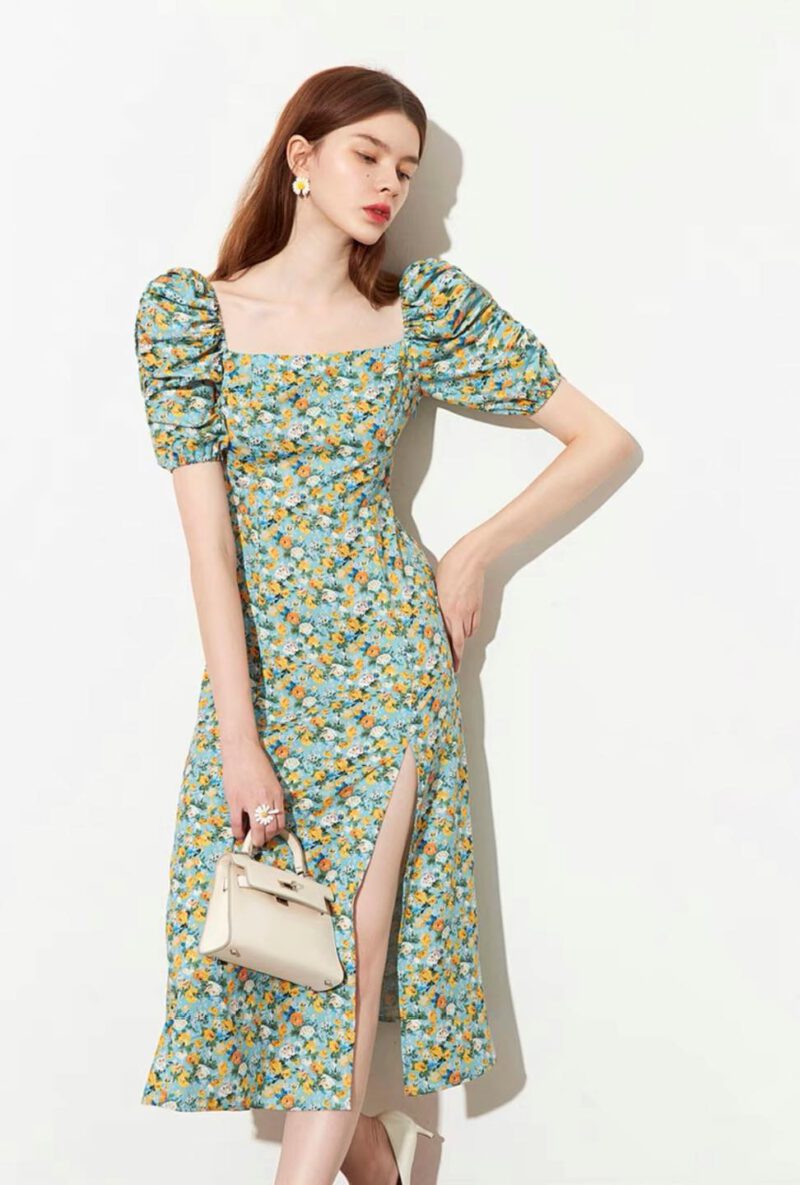 เดรสทรงยาวแขนตุ๊กตา รุ่นนี้รอบไหล่และปลายแขนยางยืดมากับดันทรงที่แขนทำให้แขนพ่องและสวย อกด้านหลังสม๊อคสามารถยืดได้ 2-4 นิ้ว มีซิปซ่อนด้านข้าง เนื้อผ้าโพลีเอสเตอร์ เนื้อผ้าไม่บาง อกด้านหน้าไม่มีฟองน้ำ ผ้าไม่ยืดใส่เข้ารูป
