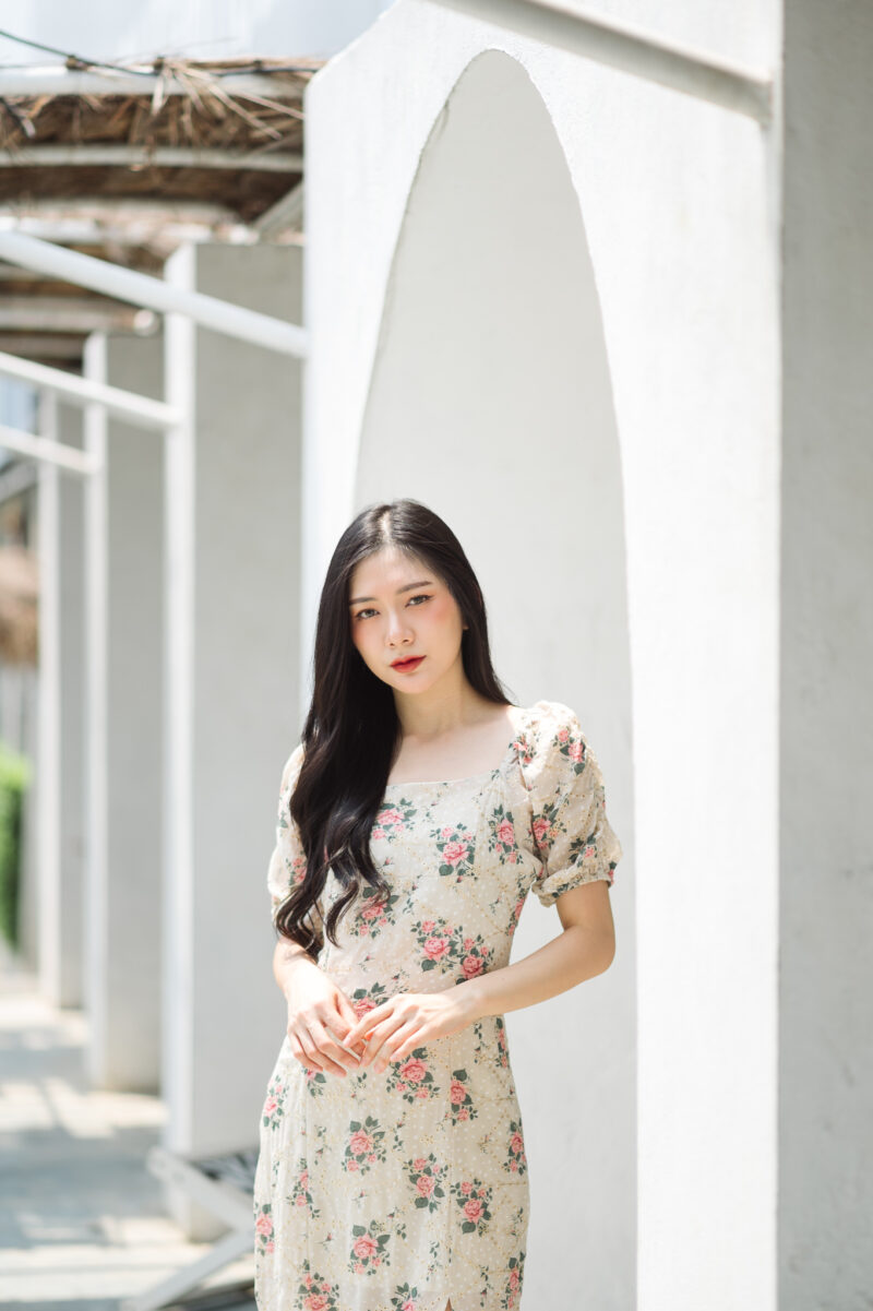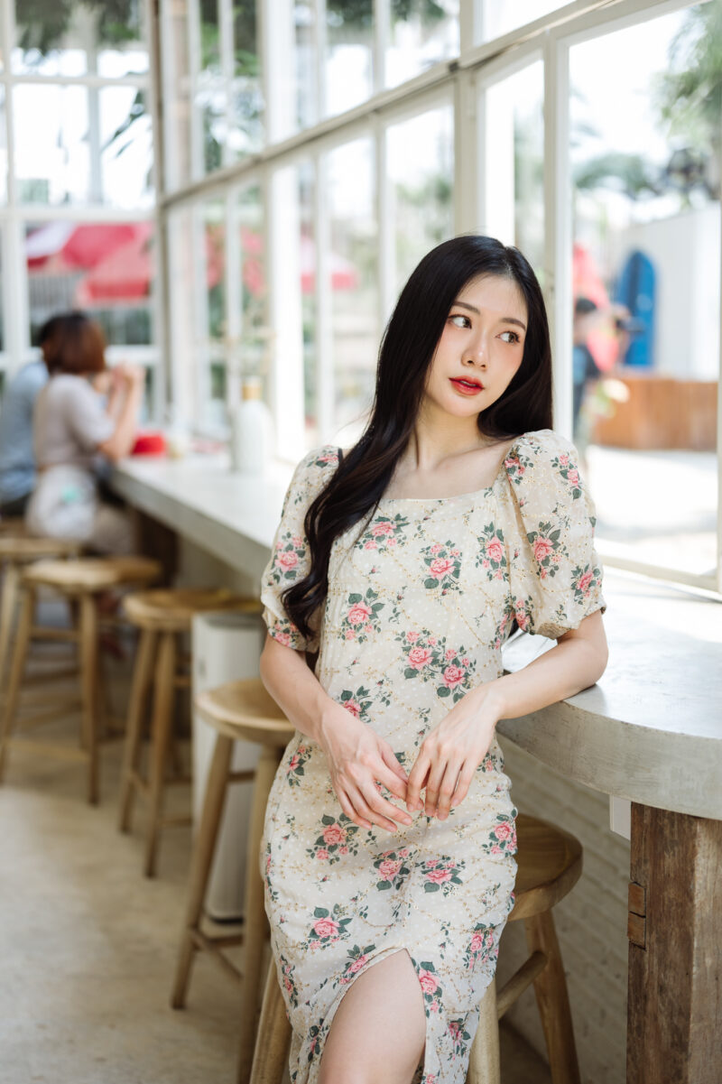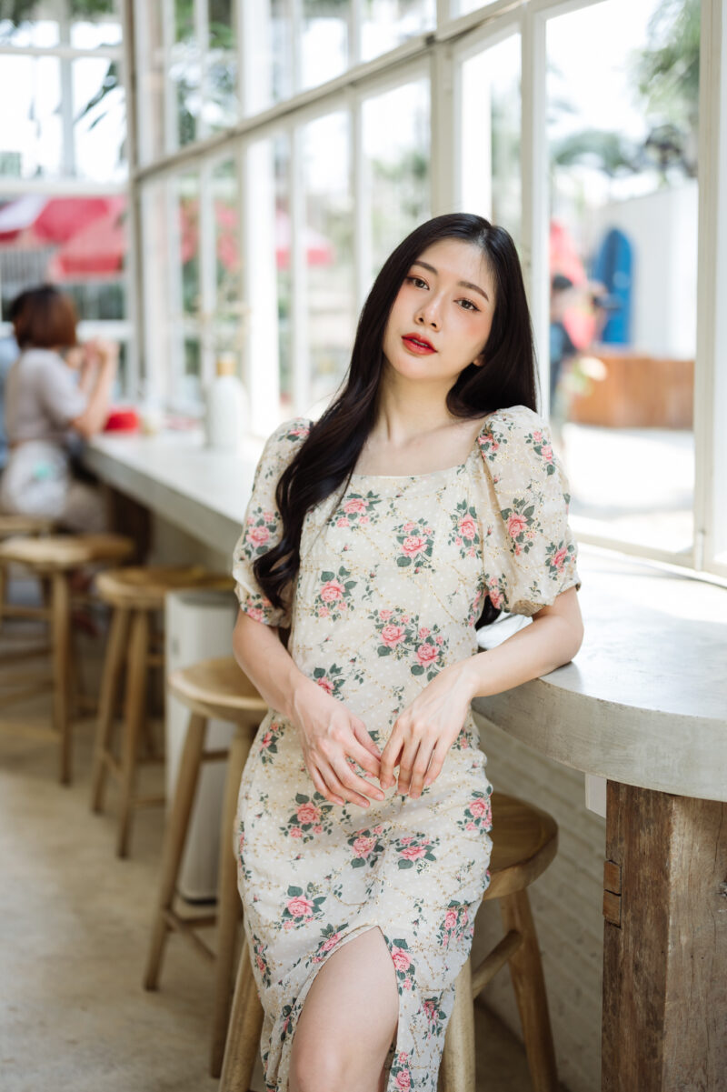 เดรสยาว ใส่เข้ารูป เนื้อผ้าชีฟองน้ำหนักเบา ตกแต่งงานปัก