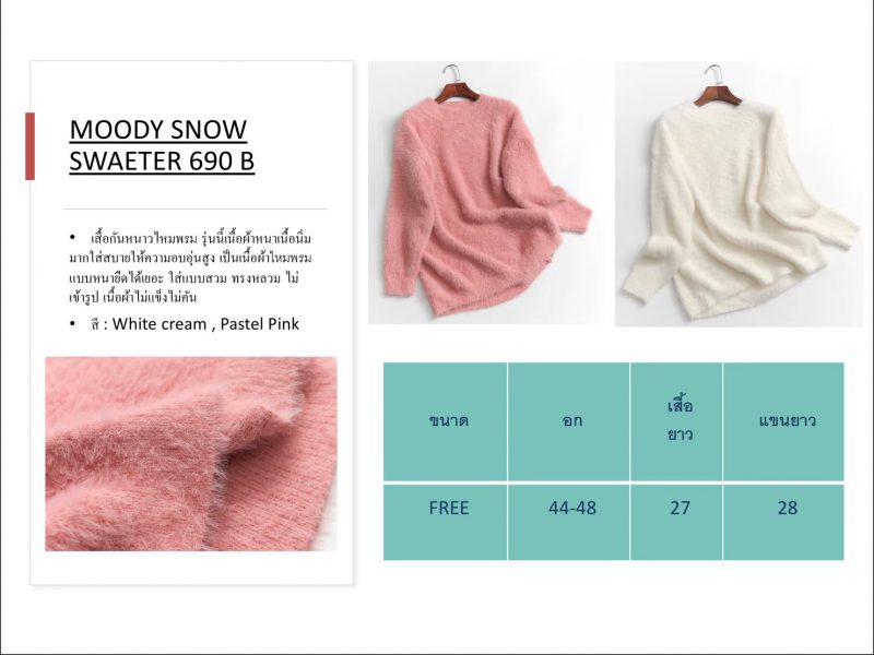 เสื้อกันหนาวไหมพรม รุ่นเนื้อผ้าหนา เนื้อนิ่มมากใส่สบายให้ความอบอุ่นสูง เป็นเนื้อผ้าแบบหนายืดได้เยอะ ใส่แบบสวม ทรงหลวม ไม่เข้ารูป เนื้อผ้าไม่แข็ง