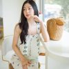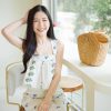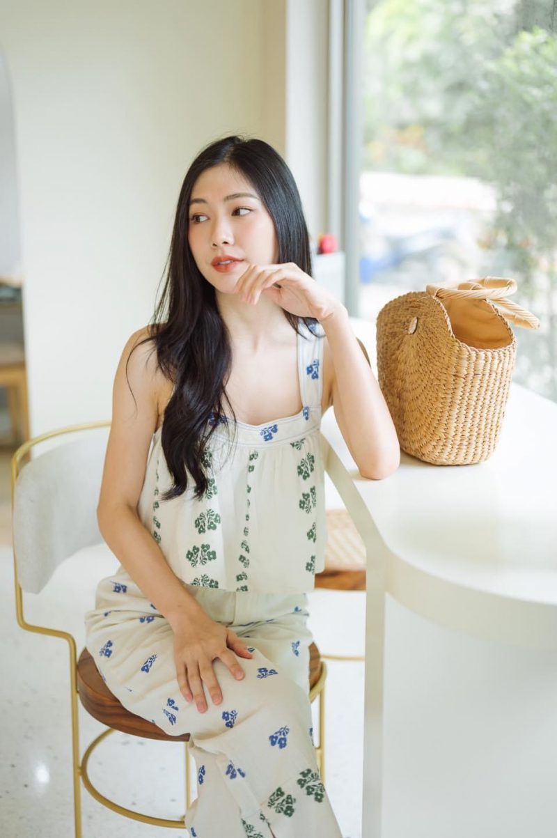 เสื้ออแขนกุด และกางเกงเอวสูง เนื้อผ้าโพลีเอสเตอร์หนา มีน้ำหนัก เนื้อผ้ายืดหยุ่นได้อีก 1-2 นิ้ว