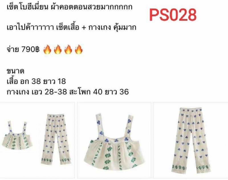 ชุดเซ็ตโบฮีเมี่ยน เนื้อผ้าค้อตต้อน ขนาดเสื้อ อก 38 ยาว 18