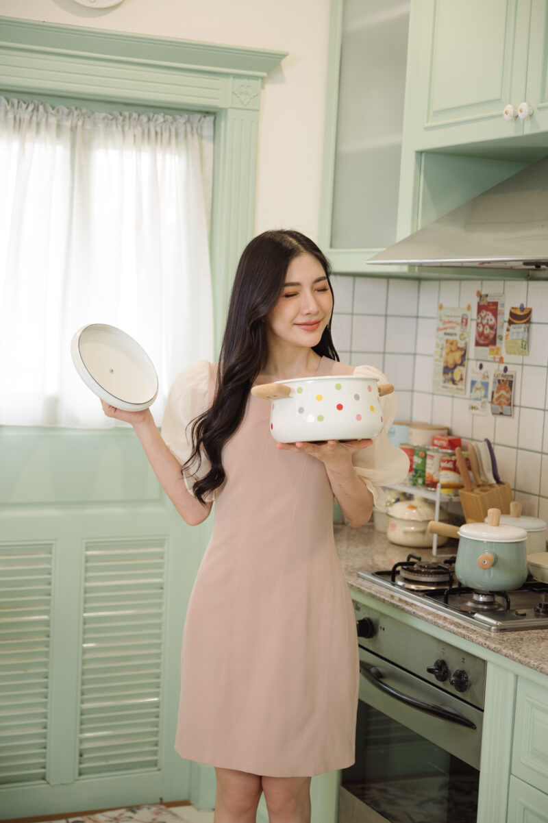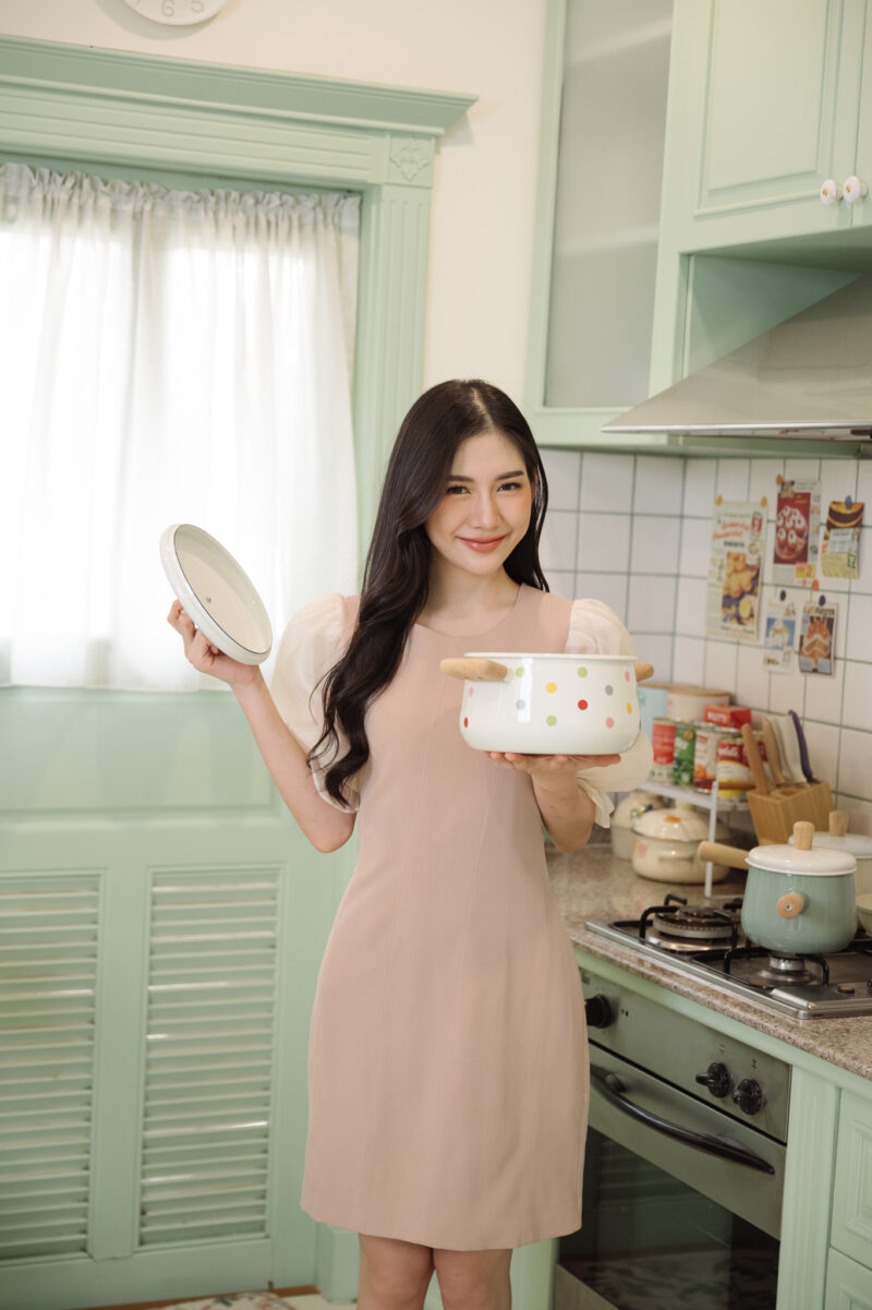 คอค้านหลัง ชุดใส่แบบสวม ไม่มีซิป ทรงหลวม ใส่แบบไม่รัครูป **
