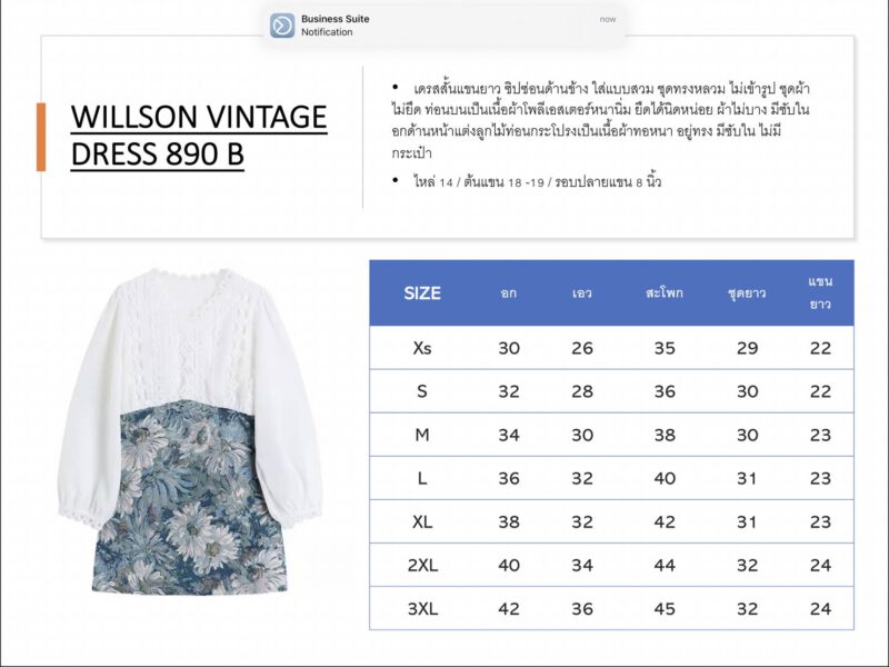 - เดรสสั้นแขนยาว ซิปซ่อนด้านข้าง ใส่แบบสวม ชุดผ้าไม่ยืด ท่อนบบนเป็นเนื้อผ้าโพลีเอสเตอร์หนานิ่ม ยืดได้นิดหน่อย ผ้าไม่บาง มีซับในอิด้านหน้าแต่งลูกไม้ ท่อนกระโปรงเป็นเนื้อผ้าทอหนา อยู่ทรง มีซับใน ไม่มีกระเป๋า